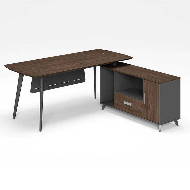Bàn giám đốc BGD-CS04 là mẫu bàn thiết kế hiện đại, sang trọng, phù hợp cho phòng làm việc lãnh đạo, trưởng phòng, quản lý. Kiểu dáng góc L kết hợp tủ phụ tiện lợi giúp tối ưu không gian và tăng hiệu suất làm việc.