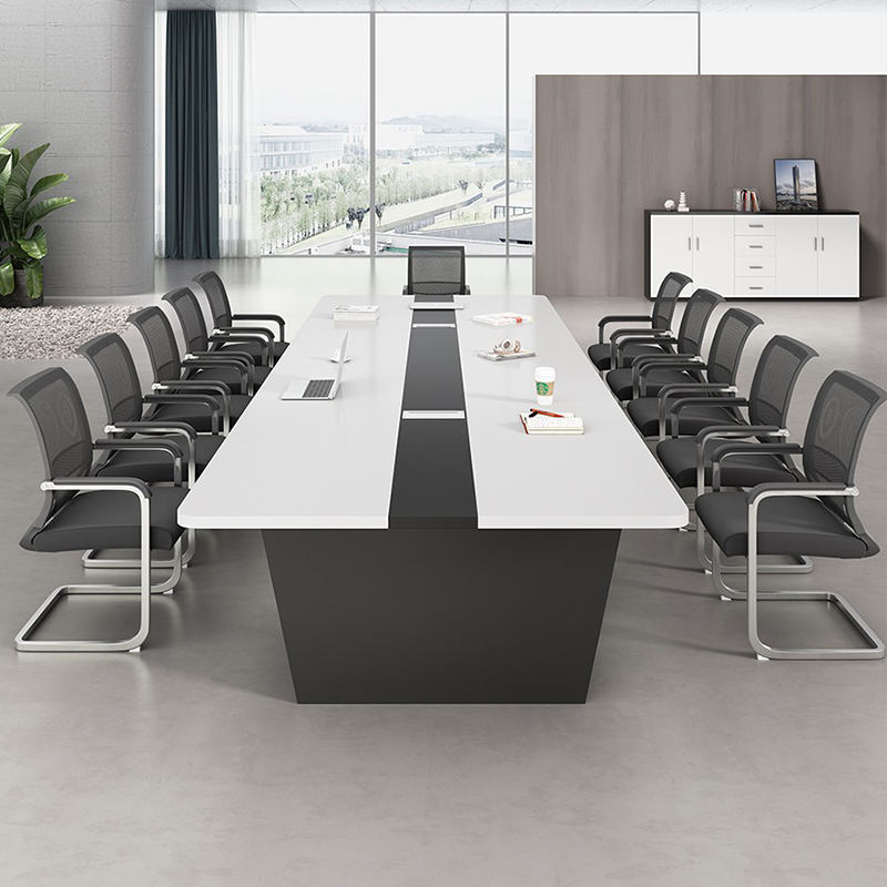 Sự kết hợp giữa mặt bàn trắng sáng và chân bàn màu tối không chỉ tạo ra một sản phẩm bền bỉ theo thời gian mà còn dễ dàng phối hợp với nhiều mẫu ghế và nội thất văn phòng khác nhau.
