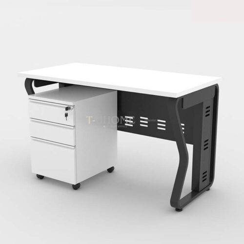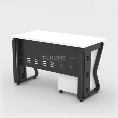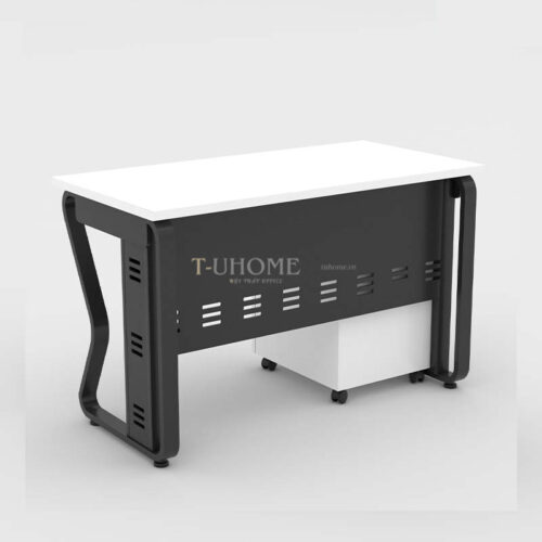 Bàn có kích thước tiêu chuẩn 1200mm, giúp tối ưu diện tích nhưng vẫn đủ rộng để đặt laptop, màn hình máy tính, tài liệu và phụ kiện làm việc mà không gây cảm giác chật chội. Khung chân sắt được thiết kế hình hộp vuông chắc chắn, khả năng chịu lực cao, chống rung lắc khi gõ bàn phím hay làm việc cường độ cao. Bề mặt bàn sử dụng gỗ MDF cao cấp, được phủ lớp Melamine sáng đẹp, kháng nước – chống ẩm – hạn chế trầy xước, dễ lau chùi, giúp giữ bàn luôn sạch mới theo thời gian.