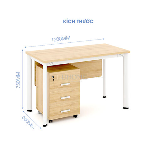 Bàn đi kèm hộc tủ 3 ngăn di động, có khóa bảo mật và bánh xe dễ dàng di chuyển. Đây là giải pháp lưu trữ lý tưởng cho hồ sơ, sổ sách và đồ dùng cá nhân, giúp bàn làm việc luôn gọn gàng và ngăn nắp.