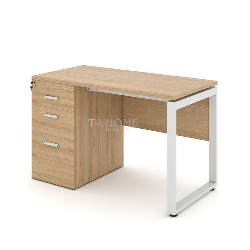 Bàn được trang bị hộc tủ liền bàn 3 ngăn kéo, giúp người dùng dễ dàng lưu trữ tài liệu, hồ sơ và vật dụng cá nhân một cách gọn gàng. Ngăn kéo trên cùng tích hợp khóa an toàn, rất tiện lợi để bảo quản những giấy tờ quan trọng.