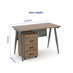 Mặt bàn được làm từ gỗ công nghiệp MDF phủ Melamine, có khả năng chống trầy xước, chống thấm và dễ dàng vệ sinh. Với tone màu gỗ tự nhiên, sản phẩm mang lại sự ấm cúng và hài hòa cho không gian làm việc.