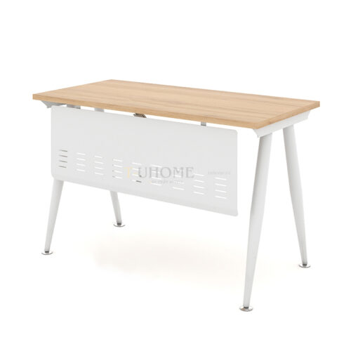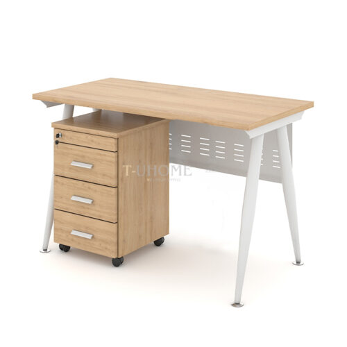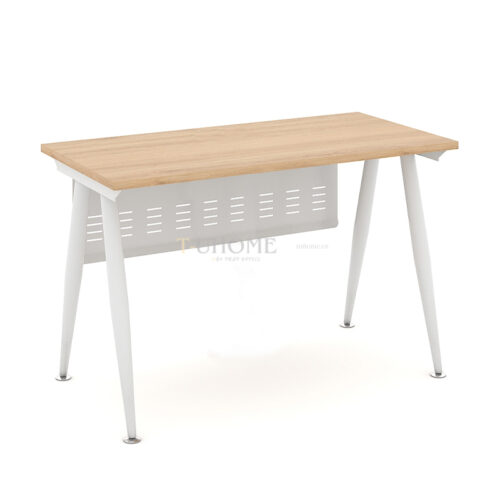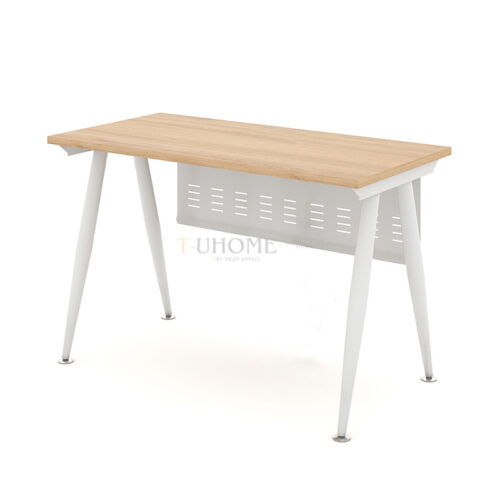 Bàn làm việc UT12-02 là mẫu bàn văn phòng mang phong cách trẻ trung và hiện đại, phù hợp với nhiều không gian làm việc từ công ty đến phòng làm việc tại nhà. Thiết kế mặt gỗ màu sáng kết hợp chân sắt hình trụ thuôn tạo cảm giác thanh thoát, tinh tế và rất hiện đại.