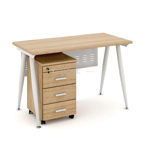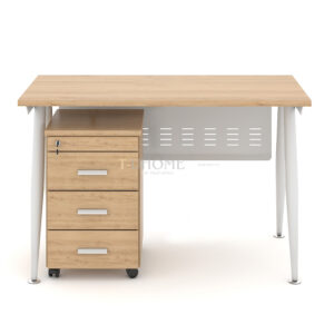 Mặt bàn được làm từ gỗ công nghiệp MDF phủ Melamine, có khả năng chống trầy xước, chống thấm và dễ dàng vệ sinh. Với tone màu gỗ tự nhiên, sản phẩm mang lại sự ấm cúng và hài hòa cho không gian làm việc.
