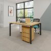 - Mặt Bàn Vân Gỗ Sáng: Mặt bàn làm việc sử dụng tông màu vân gỗ sáng, ấm áp (như màu gỗ Sồi), mang lại cảm giác dễ chịu, gần gũi với thiên nhiên và làm sáng khu vực làm việc.