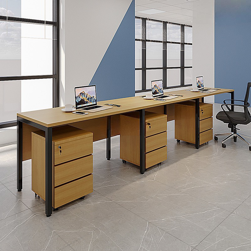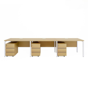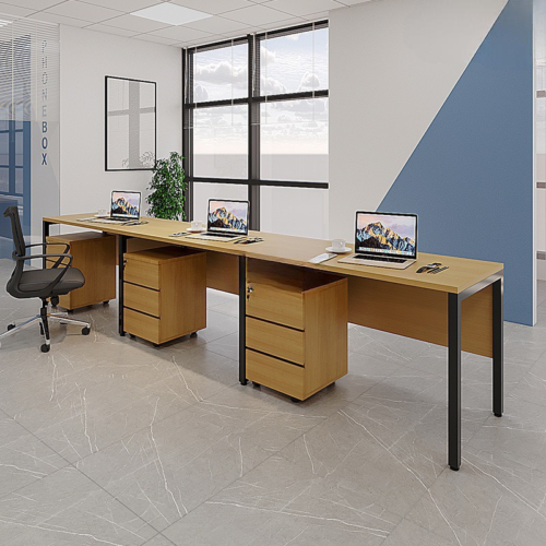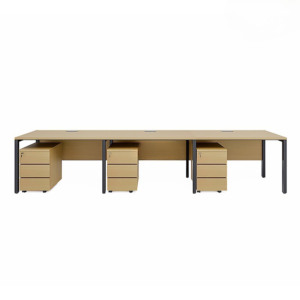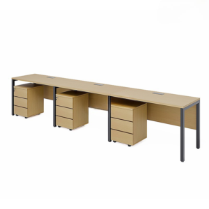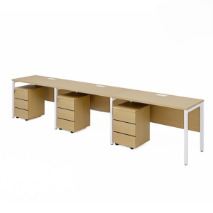 Cụm bàn CB3N-TE03 sở hữu thiết kế 3 chỗ ngồi liền kề, thẳng hàng, lý tưởng để bố trí dọc theo tường hoặc cửa sổ. Mặt bàn lớn được nâng đỡ bằng hệ thống khung chân sắt hộp mảnh sơn tĩnh điện màu trắng. Khung sắt tạo ra một cấu trúc vững chắc nhưng vẫn giữ được sự thông thoáng tuyệt đối dưới gầm bàn, giúp không gian văn phòng trở nên nhẹ nhàng và hiện đại.