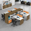- Vách Ngăn Nỉ Màu Cam: Vách ngăn nỉ/mica màu cam phân tách rõ ràng 4 khu vực làm việc, cung cấp sự riêng tư cần thiết, đồng thời là nơi để gắn các ghi chú cá nhân.
