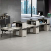 - Tạo Hình Đồng Bộ: Toàn bộ cụm bàn được thiết kế liền mạch, tạo thành một khối chữ nhật dài, tăng tính đồng bộ và chuyên nghiệp cho không gian.