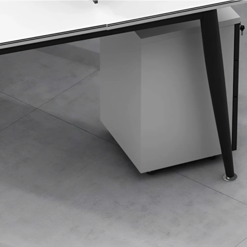 Để hỗ trợ người dùng, mỗi vị trí làm việc đều được trang bị lỗ đi dây điện tiện lợi, giúp không gian làm việc luôn gọn gàng và hạn chế rối dây. Khoảng trống dưới bàn rộng rãi, dễ dàng bố trí CPU hoặc hộc tủ cá nhân mà không gây vướng víu cho người làm việc. Đây là điểm cộng lớn đối với các doanh nghiệp đề cao sự sạch sẽ và tính tổ chức.