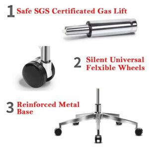 - Cơ Chế Nâng Hạ: Ghế có chức năng xoay 360 độ và sử dụng piston thủy lực để điều chỉnh độ cao. Ghế thường tích hợp cơ chế ngả lưng nhẹ để thư giãn.