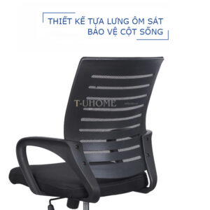 Ghế sử dụng tay vịn nhựa PP đúc nguyên khối, có đường cong theo khuỷu tay giúp giảm mỏi vai khi làm việc. Khung ghế chắc chắn, an toàn khi tựa lưng và sử dụng lâu dài.