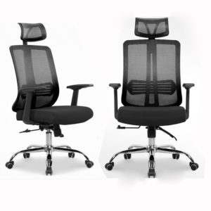 • Lưng Ghế Lưới Cao: Lưng ghế cao được bọc bằng vải lưới thoáng khí (mesh fabric), giúp không khí lưu thông tối đa, giảm tích nhiệt và đảm bảo sự thoải mái. Thiết kế lưng lưới cao cũng có thể bao gồm đường cong hỗ trợ thắt lưng (lumber support).