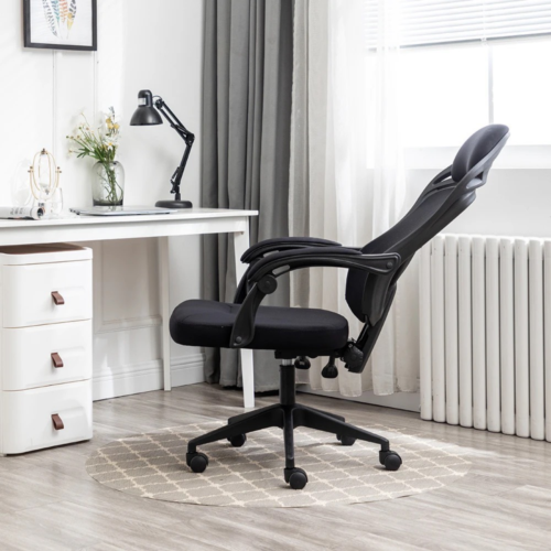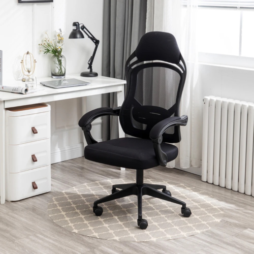- Lưng Ghế Cao và Cong: Lưng ghế được thiết kế cao, ôm sát và có đường cong nhẹ, thường có khu vực hỗ trợ thắt lưng. Phần lưng này sử dụng vải lưới thoáng khí, giúp người ngồi không bị bí bách.