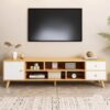 - Ngăn Kéo và Kệ Mở: Khu vực trung tâm gồm một hoặc hai ngăn kéo kín phía dưới và một kệ mở phía trên, lý tưởng để đặt các thiết bị điện tử như đầu đĩa, bộ phát sóng, hoặc sách báo.