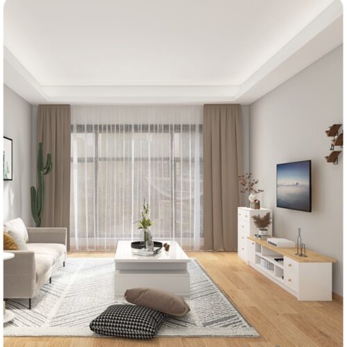 - Bề Mặt Trưng Bày Rộng: Mặt trên kệ vân gỗ sáng là không gian lý tưởng để đặt tivi, chậu cây, đèn bàn và các vật phẩm nghệ thuật trang trí khác.