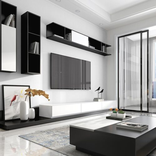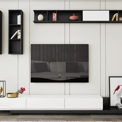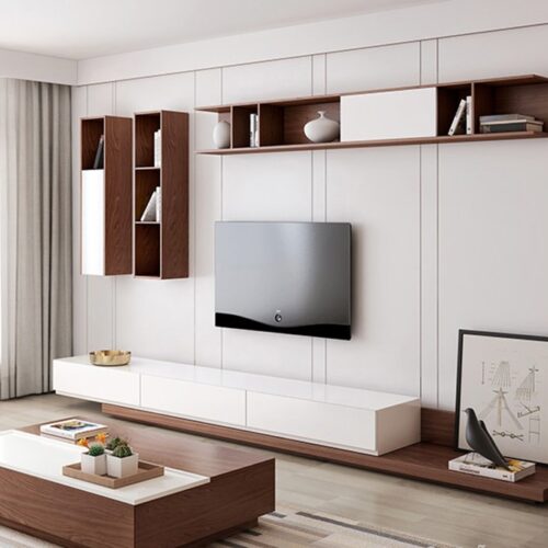 - Quản Lý Dây Cáp: Khả năng lưu trữ kín đáo bên trong khối trắng giúp quản lý dây cáp và thiết bị một cách hiệu quả, giữ cho khu vực tivi luôn ngăn nắp.