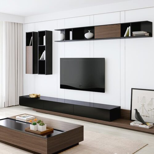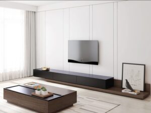 - Kiểu Dáng Tuyến Tính: Thiết kế tập trung vào các đường thẳng ngang, tạo cảm giác cân bằng, có tổ chức và hiện đại, rất phù hợp với các phòng khách có thiết kế ốp tường hoặc vách tivi cầu kỳ.