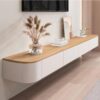 - Thiết Kế Treo Tường (Floating): Kệ được gắn trực tiếp lên tường, tạo cảm giác lơ lửng và giúp không gian sàn nhà hoàn toàn trống trải, rất phù hợp với nhà hiện đại và robot hút bụi.