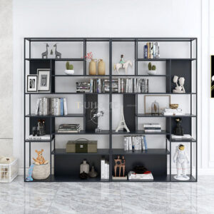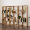 Kệ được chia thành nhiều ô lớn – nhỏ xen kẽ nhau, tạo nên hiệu ứng thị giác cuốn hút, đồng thời mang lại khả năng trưng bày linh hoạt. Bạn có thể đặt sách, lọ hoa, đồ decor, rượu vang, khung ảnh, mô hình trang trí… mà không gây rối mắt. Thiết kế mở tạo sự thông thoáng, rất thích hợp dùng như kệ trang trí phòng khách, kệ văn phòng, hoặc vách ngăn không gian cực kỳ ấn tượng.
