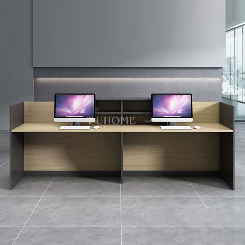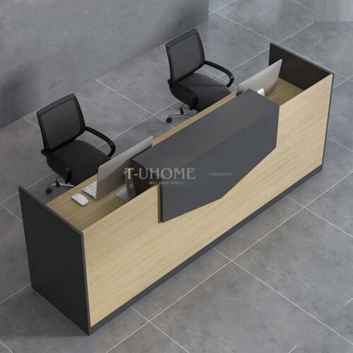 Chiều dài quầy rộng rãi, đáp ứng tốt nhu cầu tiếp đón khách hàng, giao dịch trực tiếp hoặc bố trí hai vị trí làm việc cùng lúc. Mặt bàn thoáng và bằng phẳng, đủ để sắp xếp máy tính, tài liệu, điện thoại bàn và các phụ kiện làm việc khác. Thiết kế cạnh bàn bo tròn an toàn, giúp người sử dụng thoải mái hơn trong thời gian dài làm việc.