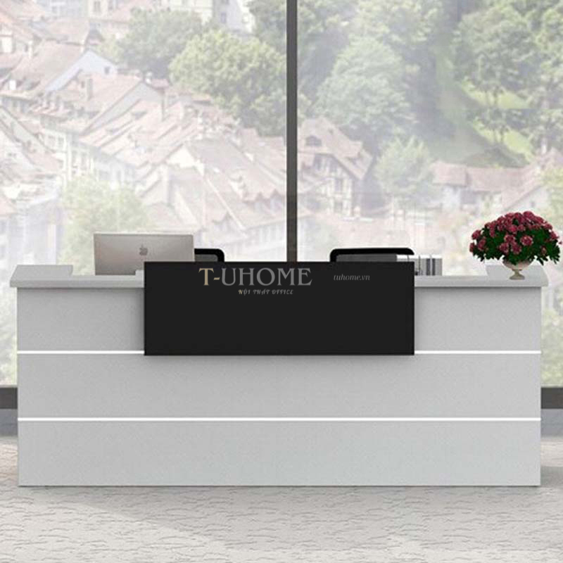 Quầy được gia công từ gỗ công nghiệp chất lượng cao phủ Melamine, có khả năng chống trầy, chống ẩm và chống bám bụi cực tốt. Nhờ vậy, bề mặt luôn giữ được sự sạch sẽ và bền đẹp theo thời gian. Tổng thể quầy có kết cấu chắc chắn, chịu lực tốt, thích hợp sử dụng liên tục trong môi trường văn phòng.