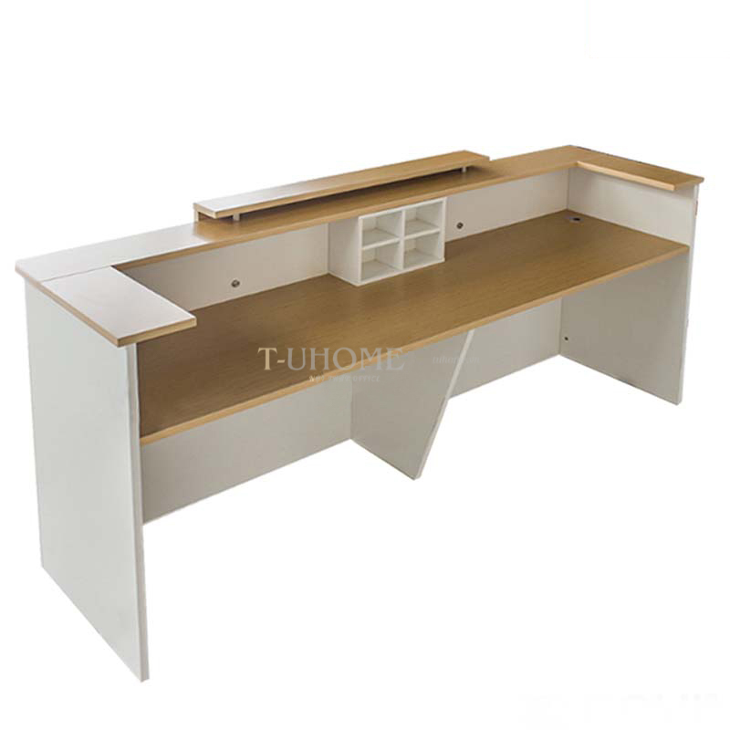 Không gian mặt bàn rộng rãi cho phép bố trí máy tính, điện thoại, hồ sơ và các vật dụng cần thiết một cách khoa học. Phía sau quầy được thiết kế tiện dụng, với các ngăn và khoảng trống lưu trữ giúp nhân viên thao tác nhanh chóng hơn và duy trì khu vực gọn gàng, chuyên nghiệp.