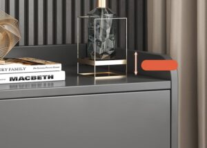 - Mặt Tủ Bo Cạnh: Mặt trên của táp thường được thiết kế bo cong hoặc có gờ chắn nhẹ ở hai bên và phía sau, giúp các vật dụng như sách, đèn ngủ không bị rơi xuống.