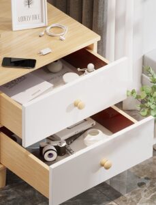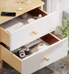 Táp Đầu Giường TAP03 là mẫu tủ đầu giường được thiết kế theo phong cách Bắc Âu (Scandinavian), mang lại vẻ đẹp tươi sáng, ấm cúng và tinh tế cho phòng ngủ. Tủ nổi bật với sự kết hợp hài hòa giữa khung gỗ vân sáng tự nhiên và hai ngăn kéo màu trắng, cùng với chi tiết chân gỗ nghiêng đặc trưng.