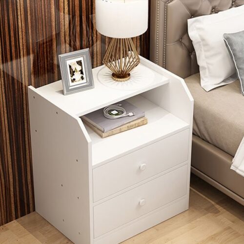 - Hai Ngăn Kéo Kín: Phía dưới là hai ngăn kéo kín với mặt trước màu trắng và tay nắm tròn tối giản, cung cấp không gian riêng tư để cất giữ đồ đạc cá nhân.