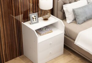 - Kệ Mở Phía Trên: Một kệ mở rộng rãi được đặt ở tầng trên cùng, lý tưởng để đặt đèn ngủ, đồng hồ báo thức, điện thoại và các vật dụng cần thiết khác