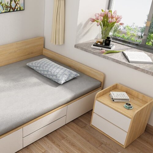 - Kiểu Dáng Tối Giản: Thiết kế hình khối đơn giản, không rườm rà giúp táp dễ dàng kết hợp với nhiều loại giường ngủ khác nhau.