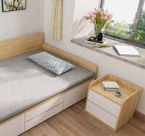- Kiểu Dáng Tối Giản: Thiết kế hình khối đơn giản, không rườm rà giúp táp dễ dàng kết hợp với nhiều loại giường ngủ khác nhau.