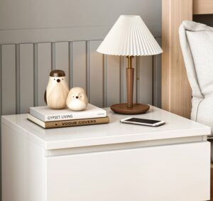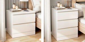 - Mặt Đặt Đồ Tiện Nghi: Bề mặt trên của tủ đủ rộng để đặt đèn ngủ, đồng hồ, sách và điện thoại.