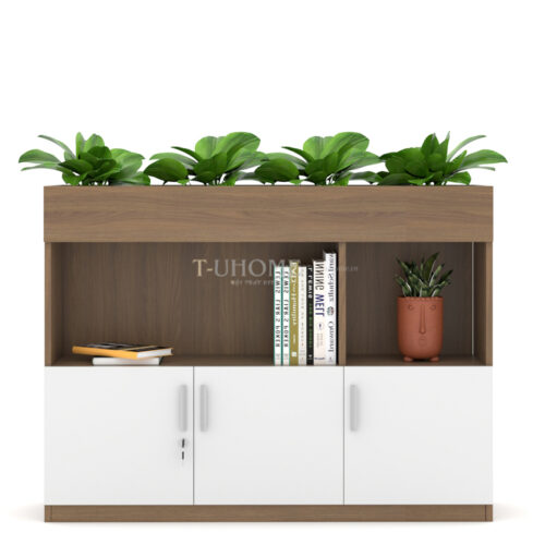 Tủ cây trang trí 3 ngăn TC3N-CS05 là giải pháp nội thất thông minh giúp không gian văn phòng trở nên hiện đại, xanh mát và gọn gàng hơn. Với thiết kế gồm kệ mở, tủ cánh đóng và khu vực để cây phía trên, sản phẩm mang đến sự hài hòa giữa tiện ích sử dụng và tính thẩm mỹ tự nhiên.