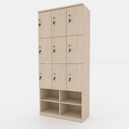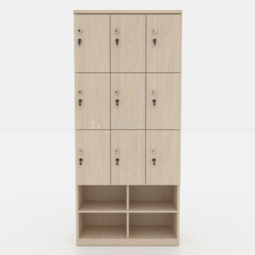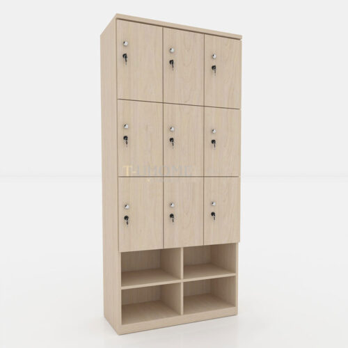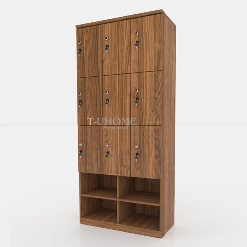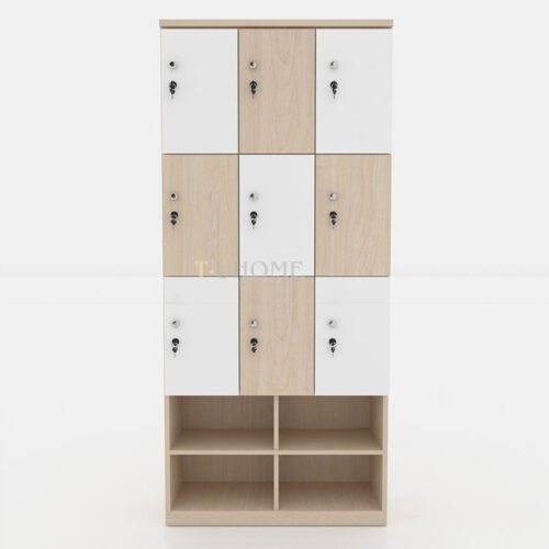 Tủ được chia thành 9 ngăn có khóa riêng biệt, giúp mỗi người dùng có không gian lưu trữ cá nhân riêng tư và an toàn. Bố cục 3 tầng – 3 cột giúp sản phẩm trông cân đối, dễ bố trí ở nhiều vị trí khác nhau mà không chiếm quá nhiều diện tích.
