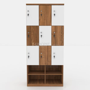 Tủ được chia thành 9 ngăn có khóa riêng biệt, giúp mỗi người dùng có không gian lưu trữ cá nhân riêng tư và an toàn. Bố cục 3 tầng – 3 cột giúp sản phẩm trông cân đối, dễ bố trí ở nhiều vị trí khác nhau mà không chiếm quá nhiều diện tích.