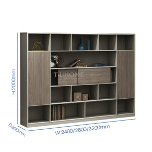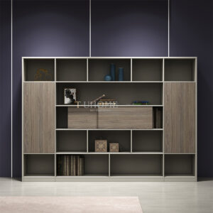 Tủ được thiết kế dạng module lớn với bố cục nhiều ngăn mở và khoang tủ kín phân bố cân đối. Hệ thống ngăn mở giúp bạn dễ dàng trưng bày sách, hồ sơ, vật phẩm trang trí hoặc những vật dụng thể hiện dấu ấn cá nhân của lãnh đạo. Các khoang tủ cánh kín cũng được bố trí hai bên, giúp lưu trữ những tài liệu quan trọng, hạn chế bụi bẩn và giữ cho không gian luôn gọn gàng.