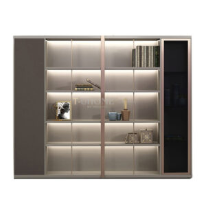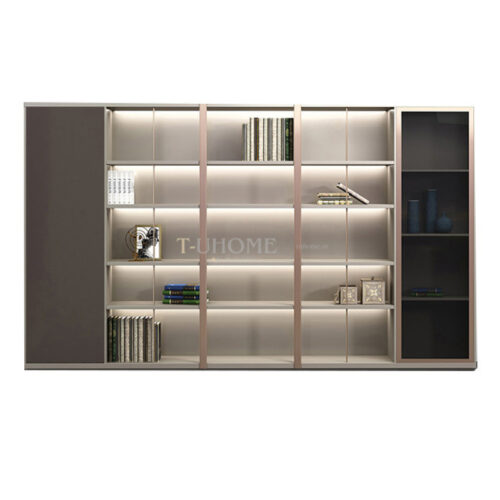 Tủ được thiết kế theo dạng mô-đun với các khoang lớn – nhỏ sắp xếp hài hòa, phù hợp để bày sách, hồ sơ, đồ trang trí, vật phẩm phong thủy hay những bộ sưu tập cá nhân. Ánh sáng LED mềm được bố trí đều trong từng khoang giúp tôn lên vẻ đẹp của vật dụng trưng bày, đồng thời tăng tính thẩm mỹ cho cả không gian.