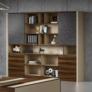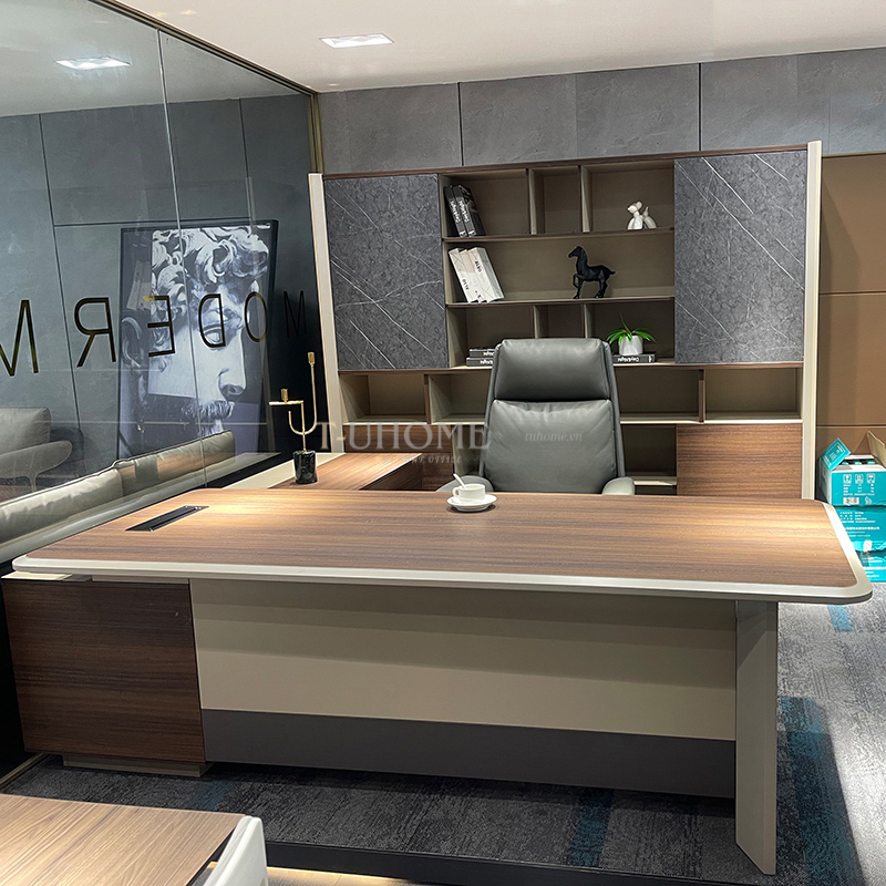 Tủ giám đốc GD506 là mẫu tủ lưu trữ – trưng bày cao cấp mang phong cách hiện đại, tối giản nhưng vẫn thể hiện rõ sự sang trọng đặc trưng của không gian lãnh đạo. Với sự hòa quyện tinh tế giữa gam màu ghi – beige – nâu gỗ cùng điểm nhấn mặt đá xám vân trắng, GD506 mang đến vẻ đẹp đẳng cấp, thời thượng và cực kỳ chuyên nghiệp cho phòng giám đốc.