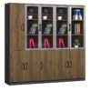 Phần trên của tủ gồm nhiều ngăn mở kích thước rộng rãi, giúp người dùng dễ dàng trưng bày sách, tài liệu, vật phẩm phong thủy hoặc các chi tiết trang trí giúp tăng tính thẩm mỹ cho phòng làm việc. Thiết kế bố cục chia ô khoa học, tiện cho việc sắp xếp và tối ưu hiệu quả lưu trữ.
