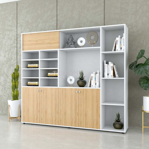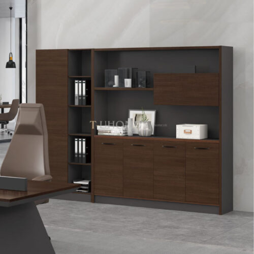 Gam màu nâu gỗ kết hợp cùng chi tiết khung kính xám thời thượng tạo nên một tổng thể hài hòa, hiện đại và đẳng cấp. Tủ dễ dàng phối hợp với bàn giám đốc, bàn họp và các phụ kiện nội thất khác để tạo nên một không gian làm việc đồng bộ.