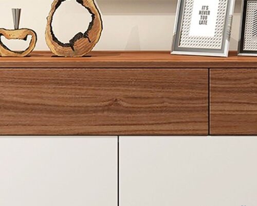 - Phối Màu Tương Phản: Sự kết hợp giữa vân gỗ đậm, ấm áp (cho khung và ngăn kéo trên) và màu trắng tinh khôi (cho mặt cánh tủ) tạo nên vẻ ngoài hiện đại, sang trọng và không bị lỗi thời.