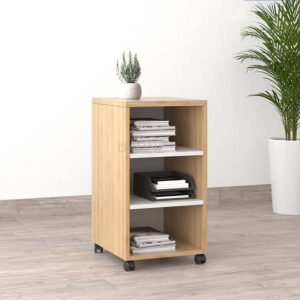 Sản phẩm được chế tác từ gỗ MDF cao cấp phủ melamine, giúp bề mặt tủ có khả năng chống trầy xước, chống ẩm và dễ dàng vệ sinh. Màu gỗ tự nhiên kết hợp với các kệ màu trắng mang lại tổng thể hài hòa, sang trọng và phù hợp với nhiều phong cách nội thất công sở, phòng làm việc tại nhà hay không gian học tập.