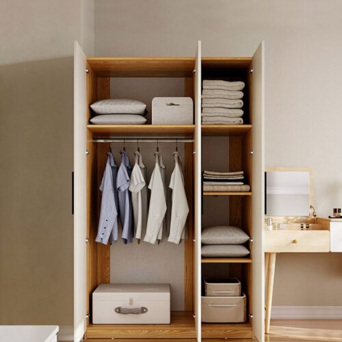 - Dễ Dàng Sắp Xếp: Hai cánh cửa mở lớn giúp người dùng dễ dàng quan sát và sắp xếp đồ đạc bên trong tủ.