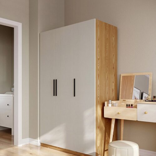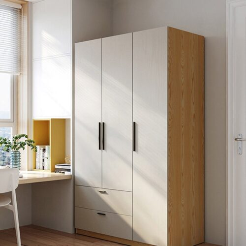 Tủ Quần Áo TA04 là một giải pháp lưu trữ thẳng đứng, được thiết kế theo phong cách hiện đại, tối giản, mang lại vẻ ngoài thanh lịch và ấm cúng cho phòng ngủ. Mẫu tủ này nổi bật với thiết kế hai cánh cửa mở đối xứng và sự kết hợp hài hòa giữa vân gỗ sáng tự nhiên (cho khung tủ và cánh bên) cùng với màu trắng (cho mặt cánh cửa chính).