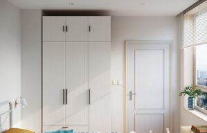 - Tay Nắm Hiện Đại: Tủ sử dụng tay nắm dài, tối màu (thường là màu đen hoặc xám đậm) được gắn dọc theo cánh cửa, tạo sự tương phản rõ ràng trên nền trắng và tăng thêm nét hiện đại.