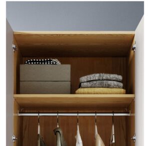 - 2 Cánh Mở Lớn: Tủ được trang bị hai cánh cửa mở lớn ở phía trước, cung cấp không gian rộng rãi bên trong để treo hoặc gấp quần áo, tùy thuộc vào thiết kế nội thất.