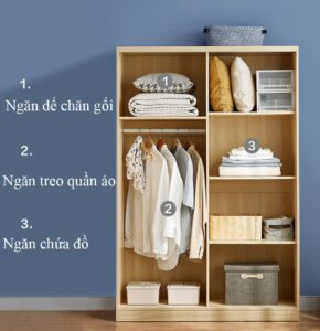 - Lưu Trữ Dung Tích Lớn: Tủ cung cấp không gian rộng rãi để treo và gấp quần áo, đáp ứng nhu cầu lưu trữ của cả cá nhân và gia đình.