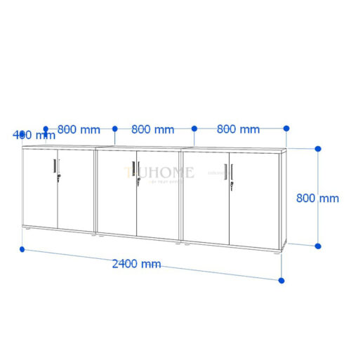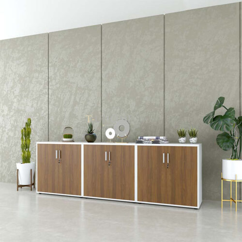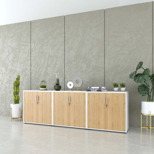Bề mặt tủ dài và phẳng giúp bạn có thể trang trí thêm cây xanh, tượng decor, tài liệu, sách báo hoặc các vật dụng trang trí văn phòng, góp phần tạo điểm nhấn cho không gian làm việc. Tủ có chiều cao thấp, dễ bố trí dọc tường hoặc kết hợp với các nội thất khác như bàn giám đốc, bàn họp hay tủ đứng cao.