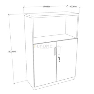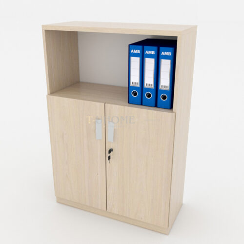 Phần khoang dưới gồm hai cánh tủ mở đi kèm tay nắm kim loại chắc chắn và khóa an toàn, giúp bảo quản các tài liệu quan trọng một cách kín đáo và bảo mật. Cấu trúc tủ được làm từ gỗ công nghiệp chất lượng cao, bề mặt phủ melamine chống trầy xước, chống ẩm và dễ vệ sinh, đảm bảo độ bền và tính thẩm mỹ lâu dài.